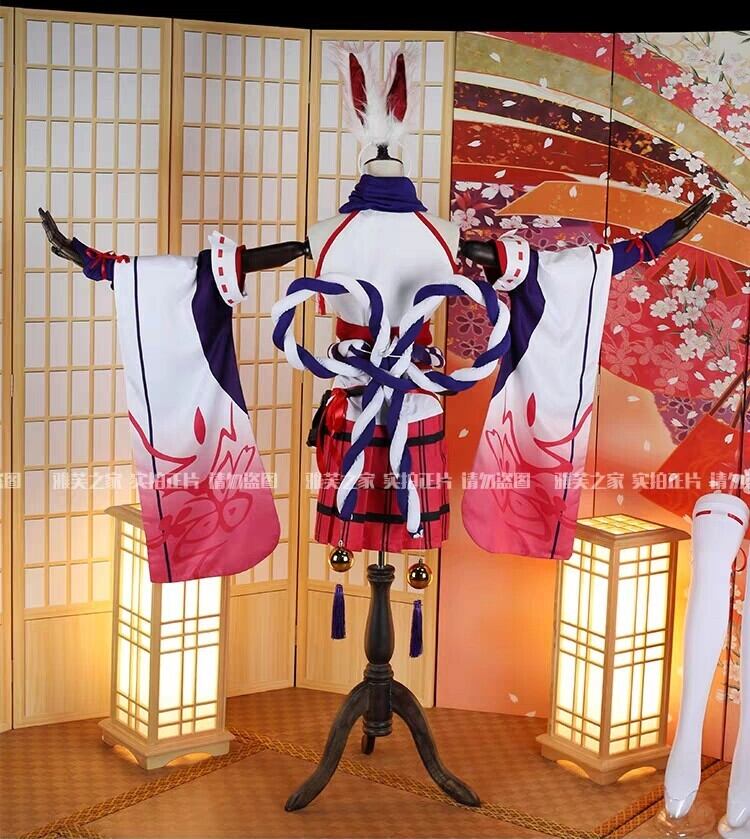 【セット内容】: 上着、スカート、ベルト、襷、仁王襷、兎耳、刀携帯レザーベルト、つけ袖、首飾り、ニーハイソックス、狐のお面