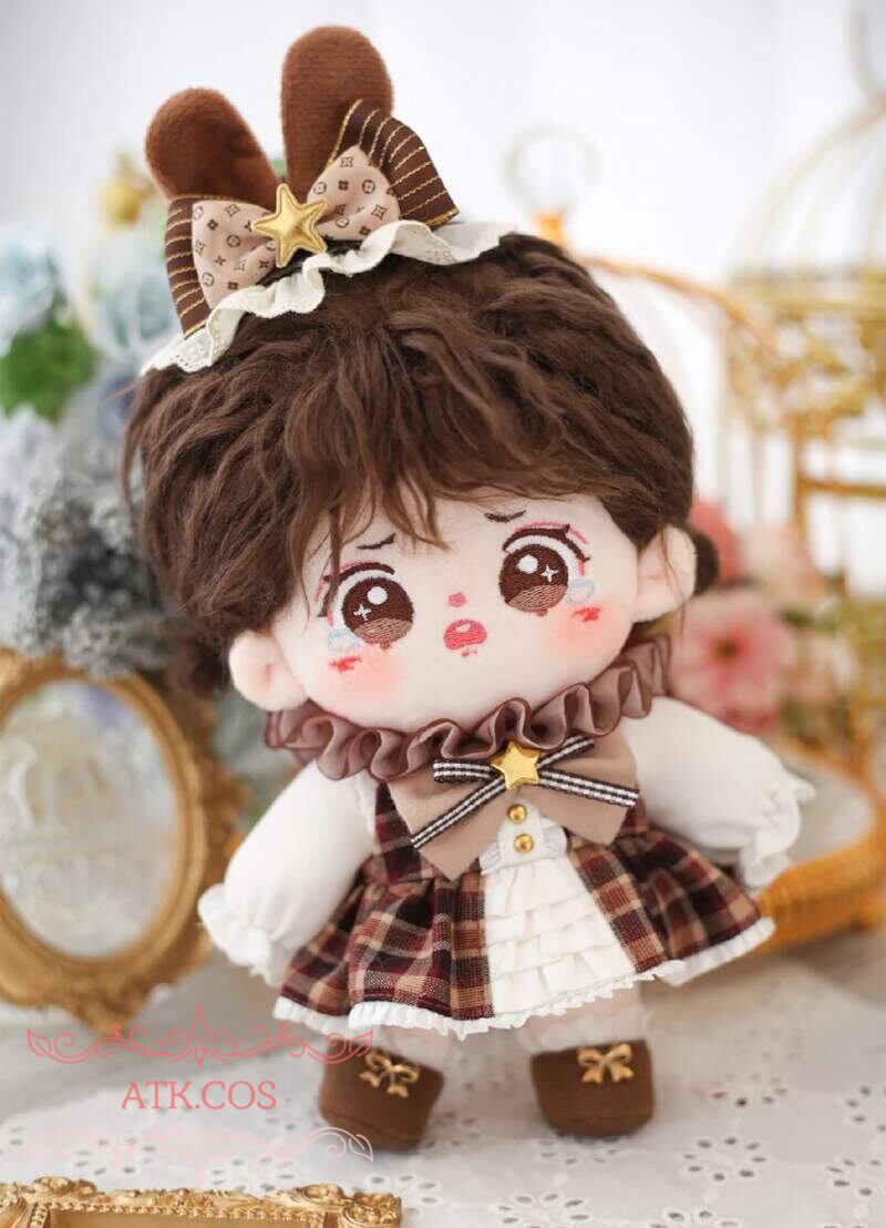 【ATK.COS】53 ぬいぐるみ 20cm 服 スカート ドレス ワンピース カチューシャ 茶色 ブラウン 大きい リボン 女の子 赤 スカート 可愛い セット
